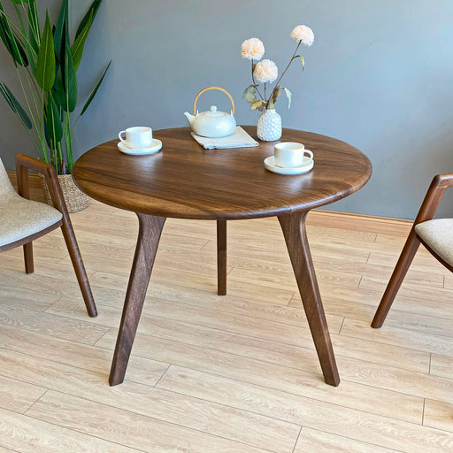 View full detailsPetra Round Wood Dining Room Table | Walnut Wood Mid Century Design