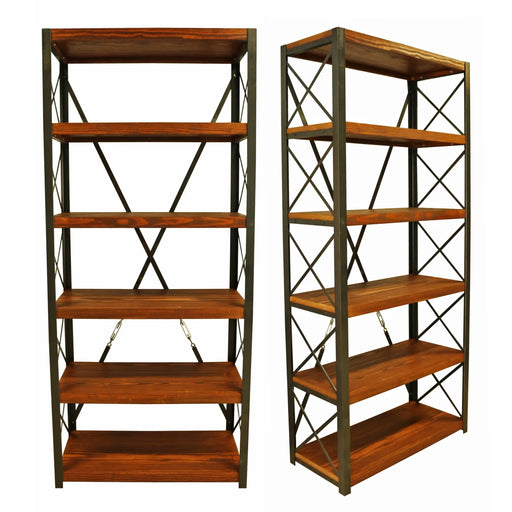 Fargo Metal Wood Bookcase | 6 Shelves Farmhouse Design.