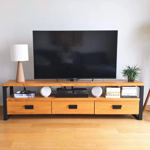 MozilyaIntroducing Solid Pine Wood TV Stand with useful drawers for your home, office, or lounge… This beautiful industrial TV Stand will make your place ...