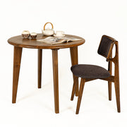 Built from solid walnut wood, the Petra wood dining table features a smooth, circular tabletop and a sturdy base designed to stand the test of time. Its modern yet inviting design adds warmth and elegance to any room, making every meal a special event.