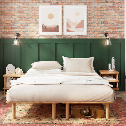 DemonthaDouble bed frame with Scandinavian style design. It is suitable for usage habits with its floor-high design. Minimalist design and solid wood mater...