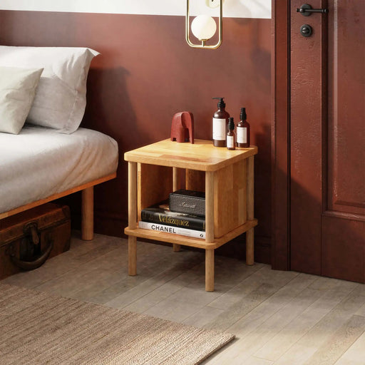 DemonthaWe present you the choice of a Minimalist Wooden Nightstand bedside table in the bedroom. Beech solid wood bedside table with 2 shelves. The top sh...