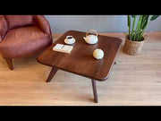 Elevate your living space with our Petra Wood Square Coffee Table, a timeless masterpiece designed for style and functionality. Crafted from 100% premium solid walnut wood, this table features a sleek square tabletop and four unique outward-tilting legs that exude elegance and stability. Moreover, the walnut's rich natural grain shines beautifully, making each piece truly one of a kind.