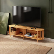 The natural finish showcases the wood’s unique grain, adding warmth and sophistication to any decor. Its sleek design effortlessly complements both modern and traditional interiors. Upgrade your home with this functional and elegant TV unit!