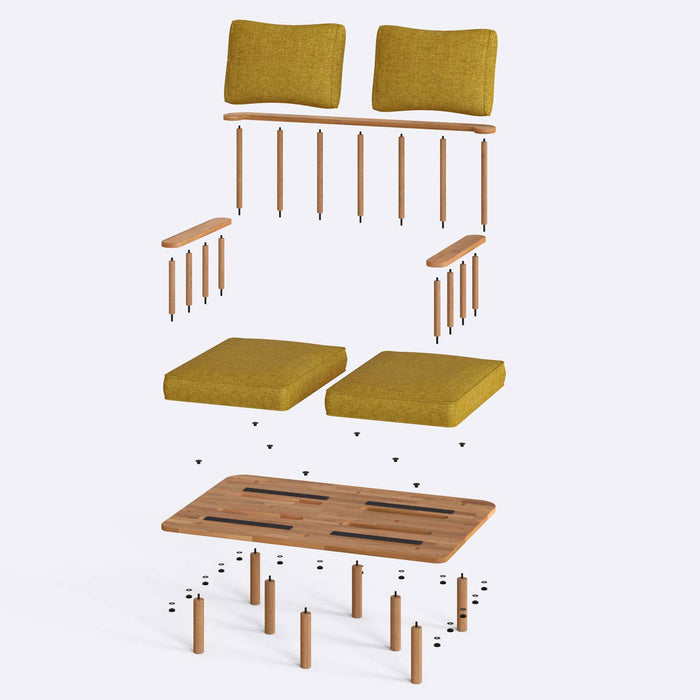 Minimalist 2 seater armchair made of solid beech wood. It adapts to every corner of your home with both aesthetic and functional features.