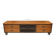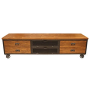 Crafted of solid pine wood to showcase a beautiful, natural grain-stained finish for a warm texture to your living room. With four easy-to-access drawers featuring and two open shelves.